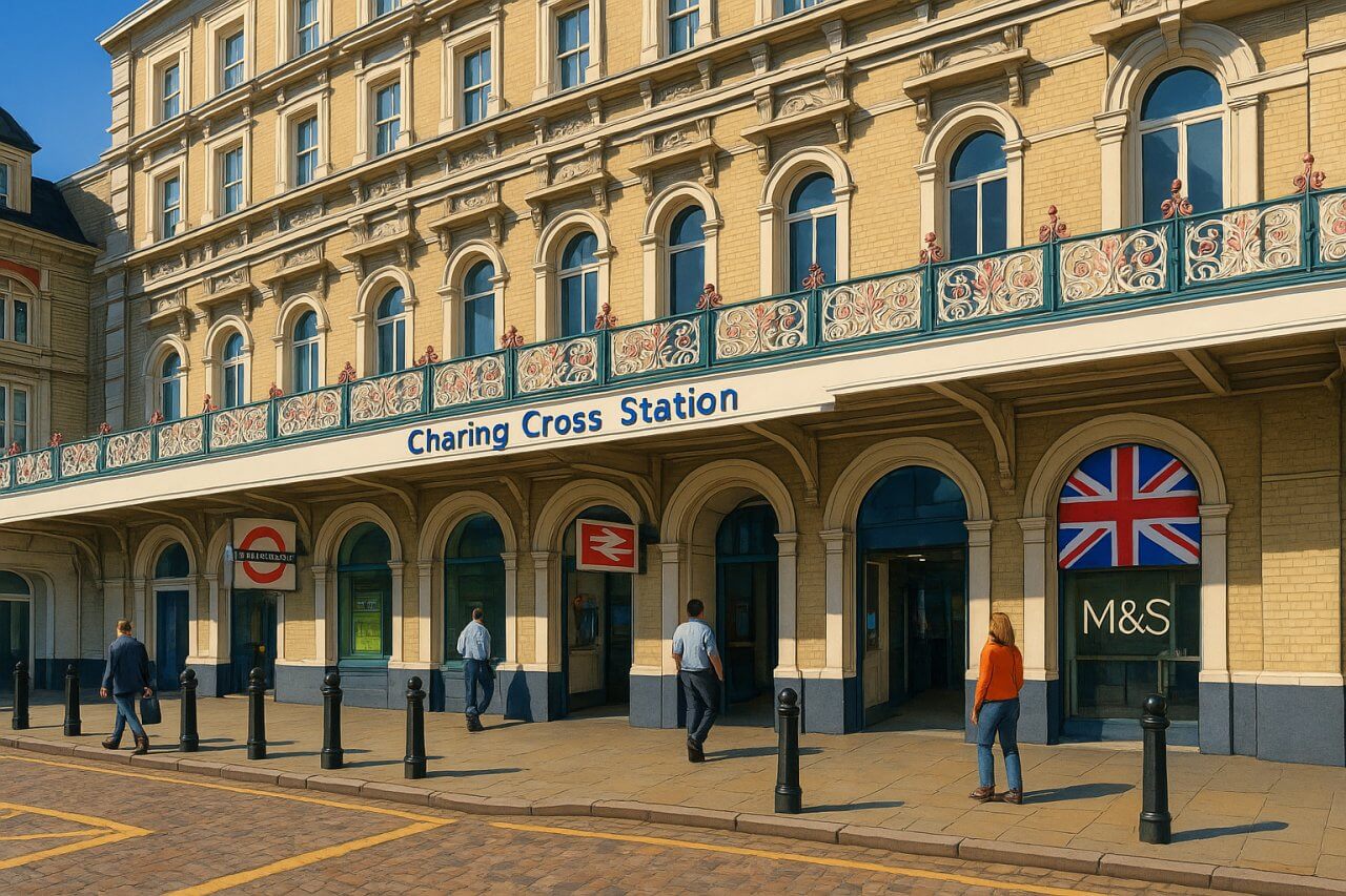 Charing Cross Underground Station is a centrally located London Underground station situated in the City of Westminster, directly adjacent to the Strand and at the southern end of Trafalgar Square. This strategic location places it at the heart of London’s West End, serving as a major hub for both commuters and tourists.