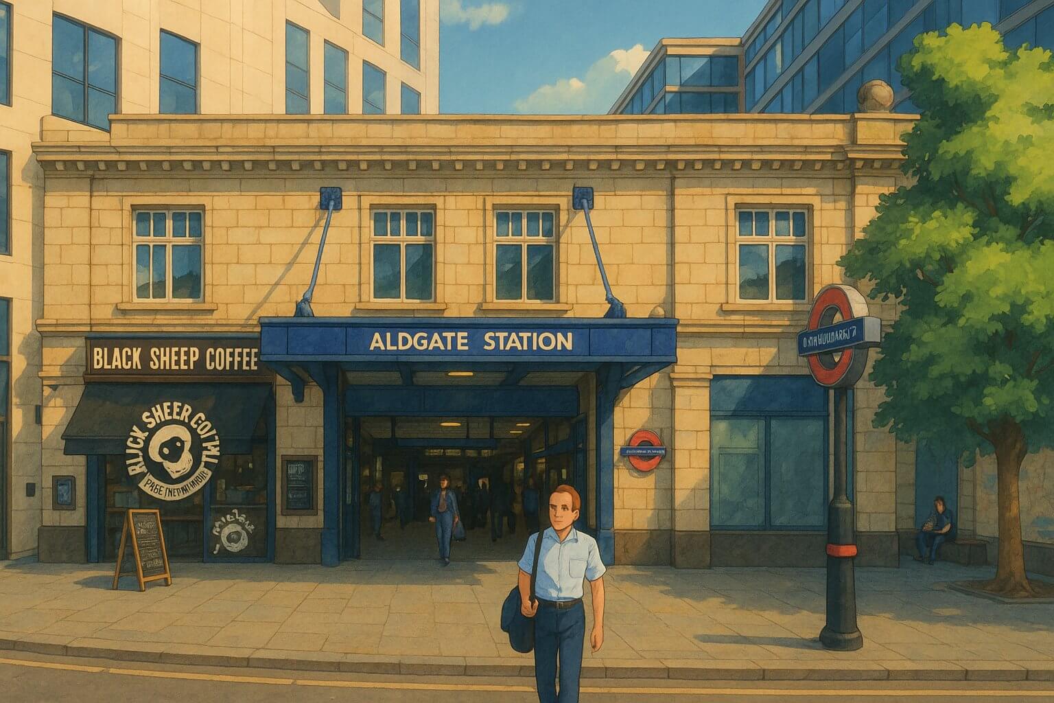 Painting of Aldgate Station of the London Underground (View full-size image here)