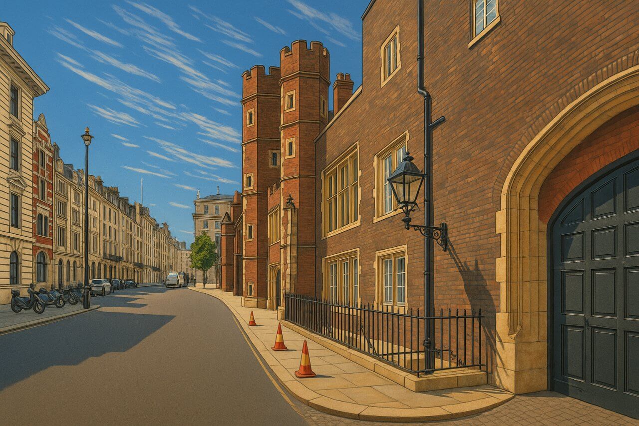 Cleveland Row is a short, historic street tucked away in the heart of St James's, City of Westminster. Flanking the northern façade of the imposing St James's Palace, this quiet road offers a glimpse into the ceremonial and aristocratic traditions of central London. Though modest in length, Cleveland Row is steeped in royal and political history and connects seamlessly to the grandeur of Pall Mall and the seclusion of Little St James's Street and Stable Yard.