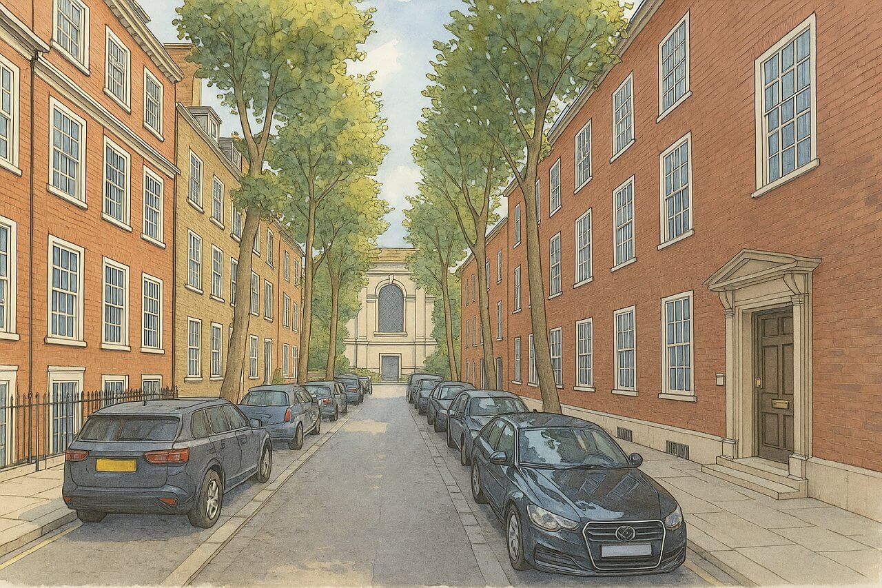 residential street, though it also houses a few offices, church-affiliated buildings, and charitable organisations. The area is known for its peaceful atmosphere despite its central location. With a notable absence of retail frontage or heavy commercial activity, the street offers a quiet enclave in bustling Westminster.