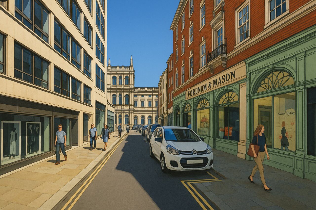 Duke Street St James's is a short but significant one-way street in the heart of London's prestigious St James's district. Located within the City of Westminster, this elegant street runs north to south from Piccadilly, starting at the iconic corner of Fortnum & Mason, down to King Street, intersected midway by Jermyn Street.