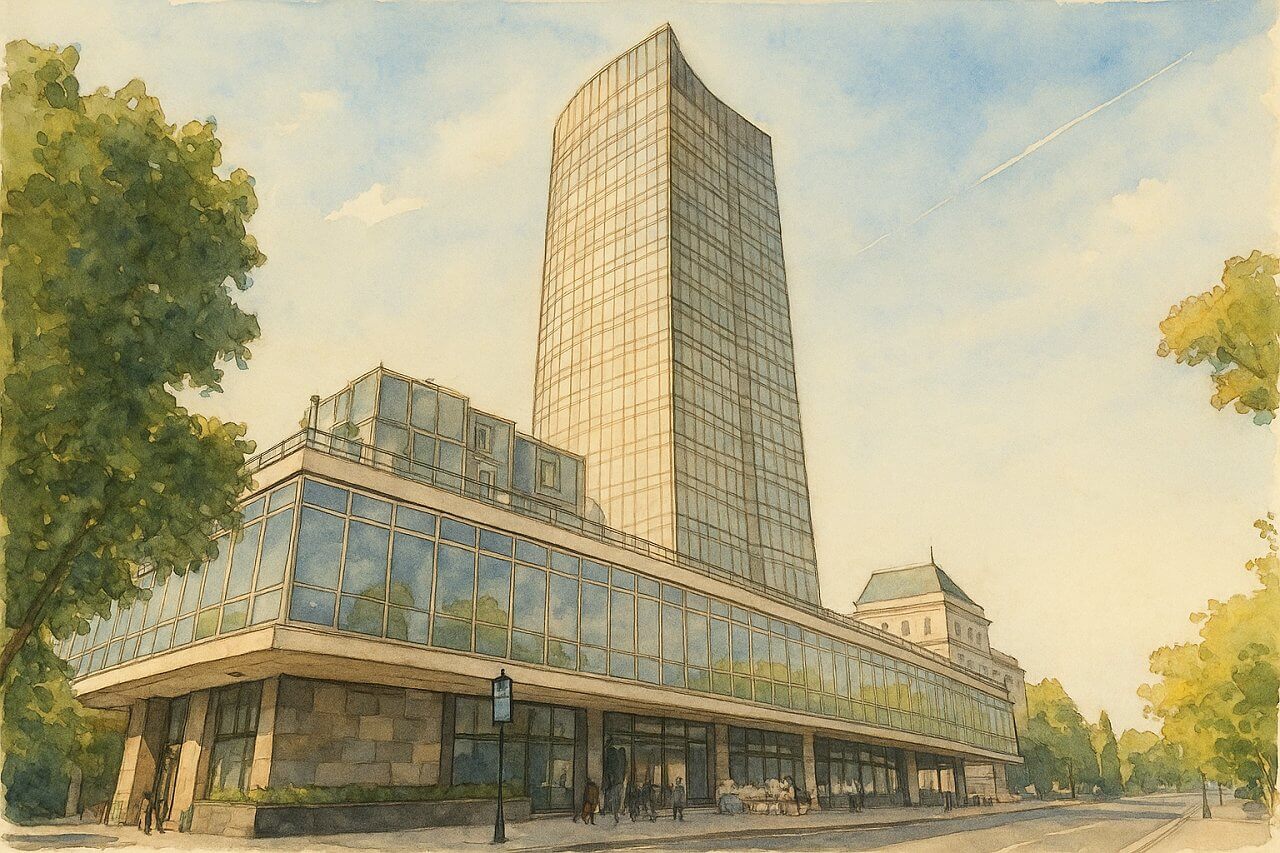 Millbank Tower was designed in the early 1960s by Ronald Ward and Partners and was completed in 1963. The architectural style is distinctly International Modernism, characterised by clean lines, a steel frame, and curtain wall glass façade.